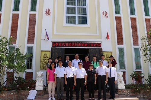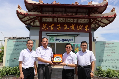 7月10日上午,中国高等职业教育代表团访问柬埔寨王家研究院孔子学院,孔子学院院长谢莫尼勒(HE Chea Munyrith)、中方院长夏修龙、院长助理陈晶雯热情接待了代表团一行。