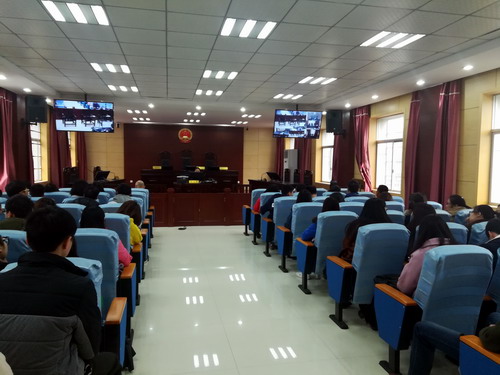 11月28日上午,政法学院组织60多名在校法学专业学生来到濂溪区人民法院,旁听刑事诉讼案件开庭审判。