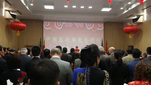当地时间2月7日,萨凡纳州立大学孔子学院中方院长罗其娟应邀参加了中国驻休斯顿总领事李强民大使及夫人曾红燕在总领馆举行的2018年春节招待会,与美南华人华侨、中资机构、留学生及友好人士代表400多人一起共迎新春。总领馆刘红梅副总领事主持招待会。