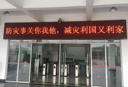 宣传以覆盖全校师生为目的,广泛利用食堂、图书馆、学生宿舍、教学楼等场所的电子滚动屏循环播放有关警示标语,提醒师生增强防灾减灾意识,提高防灾减灾技能。