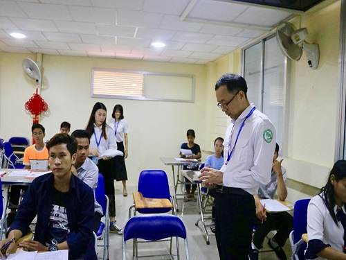 当天,柬埔寨皇家科学院孔子学院为参加本次考试的全体考生营造了一个公平、公正、舒适的考试环境,各项考试流程分工明确,各主考教师和监考教师严格按照考试流程进行考试,考场秩序良好。柬埔寨皇家科学院孔子学院中方院长夏修龙教授进行了巡考,了解考场动态,以保证考试的顺利进行。