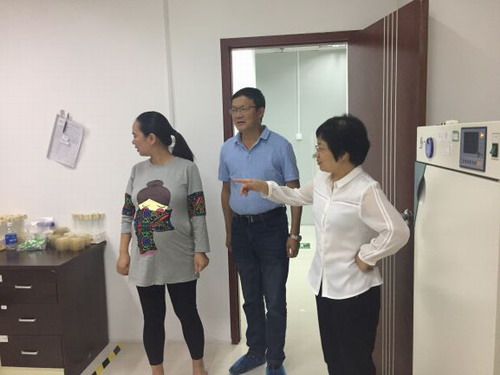 此次之行,鲍书记还考察了2005届生物信息学专业毕业生卢和华校友创办的深圳市易瑞生物技术股份有限公司。在卢和华校友的陪同下,鲍书记参观考察了企业的展示厅、行政中心、研发中心、实验室、生产车间、仓储和物流等部门,详细了解了公司的发展历程、企业文化、公司产品、销售规模以及人才需求等方面。