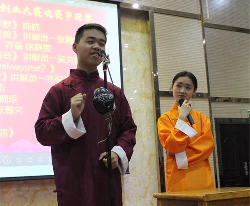 除了比赛项目,本场比赛还带来了许多精彩的文艺节目,特别是由校友刘潇远创作,香远剧社齐磊和徐静雯表演的相声《我要创业》更是博得在场观众阵阵笑声和掌声,最后比赛就在这掌声和欢笑中结束。