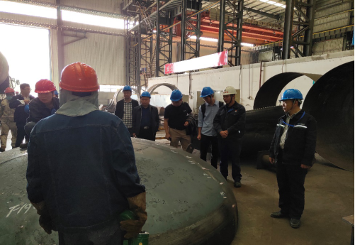 彭教授一行人首先来到九江海天设备有限公司参观成品车间,了解产品的种类、参数及性能。随后到附近的中船锅炉公司参观锅炉和燃烧器车间,仔细了解锅炉的类型及用途。然后来到中船阀门成套设备有限公司,详细了解了多种高性能阀门的工艺参数和用途。