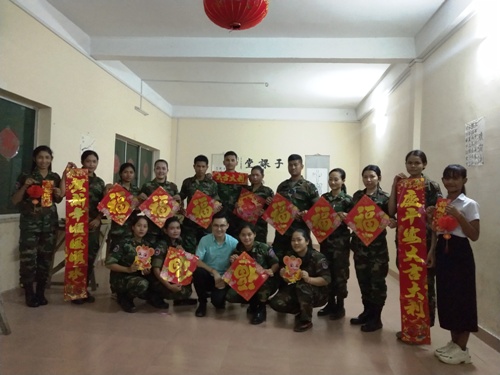 中国节庆庆祝系列活动是孔子学院每年都精心组织的文化活动,是中柬文化交流的有效途径之一。1月14日,孔子学院银行学院汉语中心苏晓君老师组织了一场主题为“万福迎新春”的文化活动。1月15日晚,金边警备旅孔子课堂魏来老师组织了课堂春节文化体验活动,通过包饺子、贴春联等环节激发了同学们对中国传统民俗文化及现代风俗的兴趣。1月17日晚,孔子学院亚欧大学中文系在金色大厅隆重举办2020年春节联欢晚会。