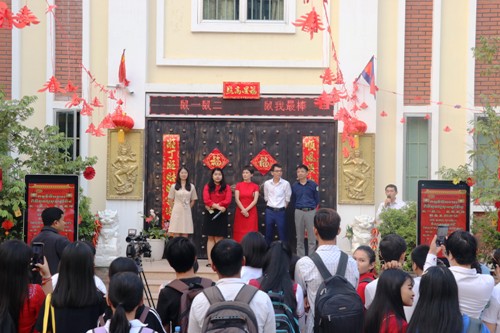 1月16日,2020年“鼠一鼠二,鼠我最棒”春节系列活动在柬埔寨皇家科学院孔子学院如期开展。孔子学院总部项目官员来永梅,志愿者管理教师田金金、李玉立,柬埔寨皇家科学院孔子学院中方院长柴克清,柬方院长苏碧娜,中建四局(柬埔寨)有限公司管理部经理谢志强先生一行4人和孔子学院全体师生300多人参与了本次活动。