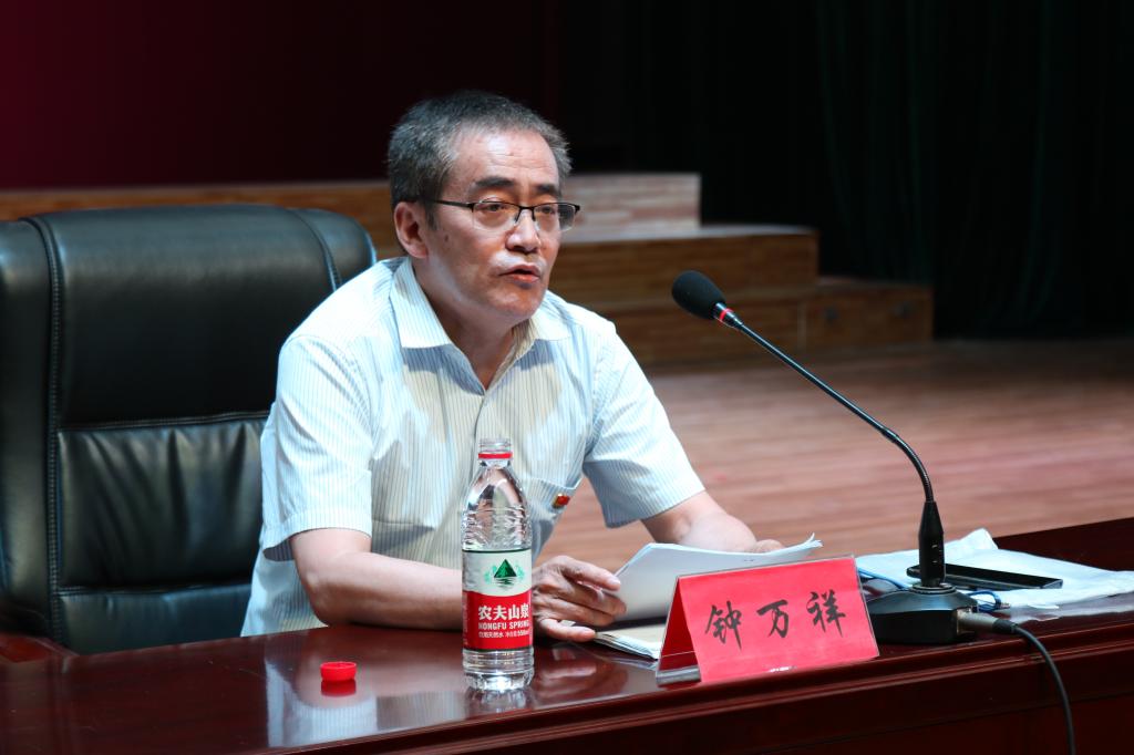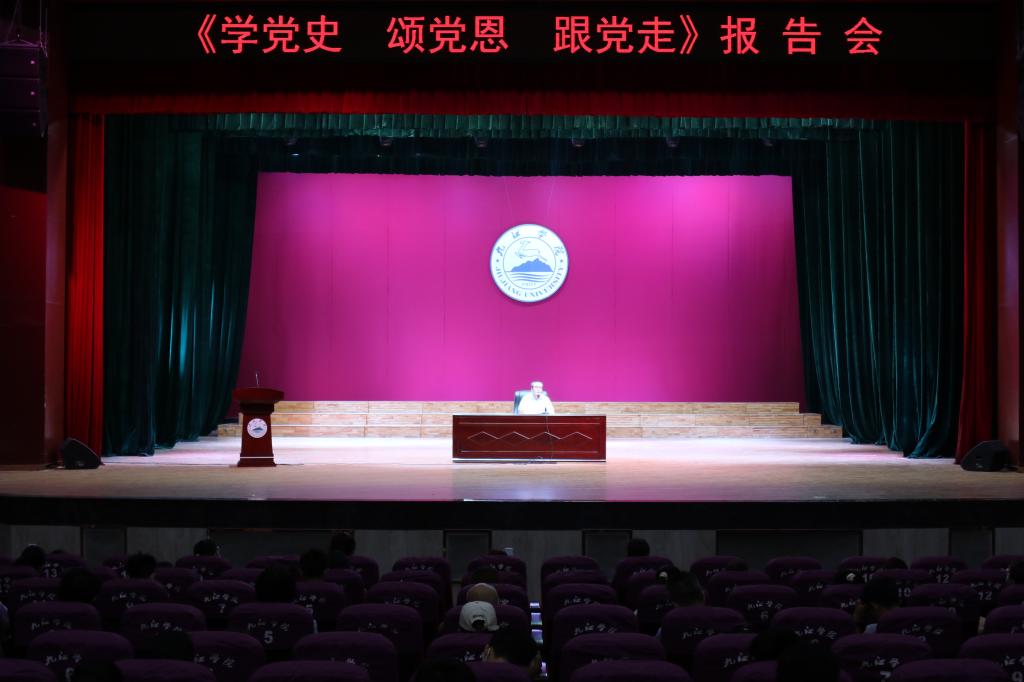 6月9日下午,九江市庆祝建党一百周年“学党史 颂党恩 跟党走”宣讲团成员、原中共九江市委党校副校长、九江市关工委报告团副团长钟万祥教授在我校主校区大礼堂作宣讲报告。市关工委副主任、报告团团长王剑,我校党委委员、宣传部部长冯健,市文明办主任吕晓芬,共青团九江市委副书记沈承峰,市教育局、市关工委有关干部和主校区师生代表近300人聆听报告。