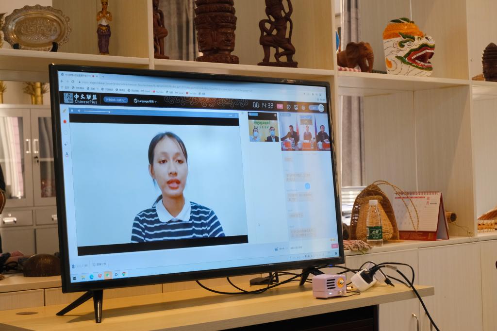 柬埔寨皇家科学院孔子学院亚欧大学中文系学员林青美用中文作了发言。她认为参加此次冬令营会帮助营员们提高汉语水平、了解中国文化、促进交流和友谊。