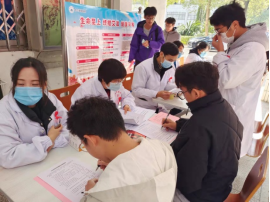 11月26日上午,校医院、五里街道社区卫生服务中心,在我校浔东校区食堂门口开展艾滋病现场宣传活动。