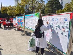 12月1日,校医院联合濂溪区防艾办、区疾控中心、区卫健委等部门在主校区三食堂广场开展防治艾滋病宣传。现场,工作人员为师生提供免费HIV自主检测、医生义诊,还设立了艾滋病性病咨询点。