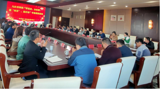 市科协、市发明学会、我校创新创业学院、九江职业技术学院产教融合中心负责人和我校化学化工学院、药学与生命科学学院、机械与智能制造学院、资源环境学院、九江职业技术学院的博士和专家,以及九江市庐山市、彭泽县、湖口县和都昌县四县市科协负责人与高新技术企业负责人共计40余人参加了会议。