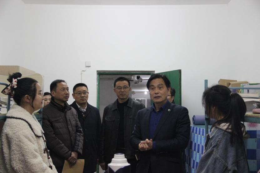 最后,杨耀防深入学生宿舍,检查了学生学习生活环境。他嘱咐同学们冬季来临要注意保暖,要保持寝室整洁卫生,生活上大家相互包容理解和关心安慰;疫情期间非必要不出校门,出校门要严格履行请假手续,同时做好个人防护。他说,药生学院的考研率很高,同学们要打牢基础,为考研做准备,在学习和职业生涯规划方面有困难及时向老师反应。期末将近,预祝同学们取得好成绩,开心安全的过寒假。