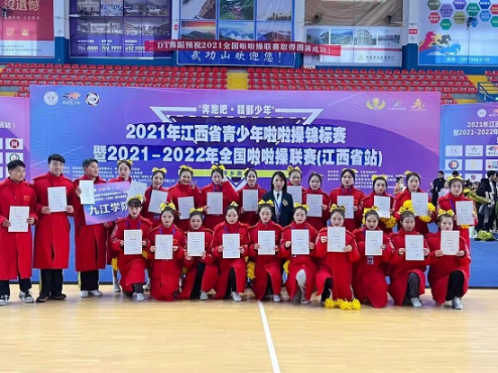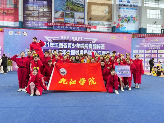 12月26日,由国家体育总局体操运动管理中心、江西省体育局、江西省教育厅主办的2021年江西省青少年啦啦操锦标赛暨2021-2022年全国啦啦操联赛(江西省站)暨萍乡邀请赛在萍乡举行。由体育学院教师李娟和刘柏君教练带队的九江学院代表队在此次竞赛中斩获四金一银。