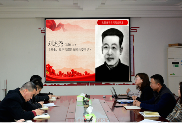 “在鄱湖的小村里,我的外曾祖父刘述尧生长在一个英烈家庭,他的两位叔叔刘肩三、刘贤扬为党捐躯,在长辈的引导下,他与自己的两个弟弟刘述舜、刘述禹皆走上革命道路,为革命抛头颅、洒鲜血……1929年底,中共都昌临时县委遭到严重破坏,刘述尧临危受命,被组织上指定代理中共都昌临时县委书记,负责处理县委机关破坏后的善后事宜。1930年1月,受组织安排,刘述尧离开都昌,赴设在湖口的赣东北革命委员会工作,三个多月后,他悲壮地牺牲于湖口,年仅29岁……。”家乡在江西都昌的支部党员陈娟动情地讲述自己外曾祖父刘述尧的革命故事。