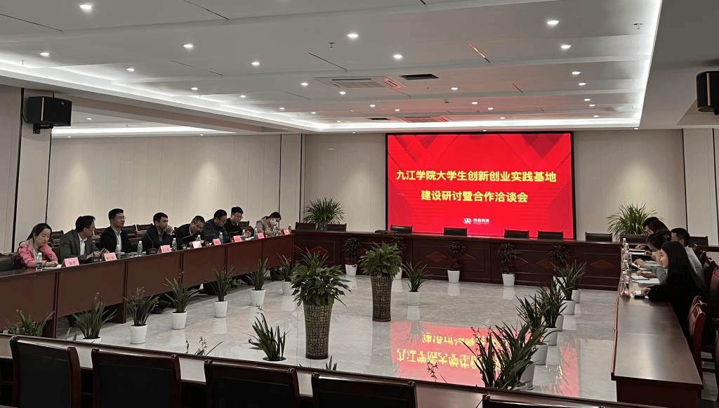 4月8日下午,九江学院大学生创新创业实践基地建设研讨暨合作洽谈在濂溪区企业江西终极科技有限公司举行。我校创新创业学院、管理学院有关负责人、教师代表及江西终极幻境科技有限公司董事长黄志翔等参加会议。市科技局、市就业创业服务中心、市企业联合会有关负责人应邀参会。
