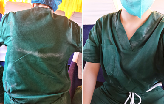 方舱内的工作,看起来简单,实则是对身心的挑战。防护服不透气,捂得特别紧,每位队员一个班次都浑身是汗;长时间佩戴N95口罩,闷得呼吸不顺畅,满脸勒痕……虽然困难重重,但是每个人都拼尽全力。队员李晴晴和张巧,都有过因头发绑高了,随着人在防护服里越来越闷胀,护目镜松紧带感觉越来越紧的经历,时间流逝中,带子勒的疼痛感扩散到整个脸颊,头围甚至到口腔、牙龈。为安全起见,她们都是和同班战友沟通了下状态,并表示可以正常工作,但是脱防护服的时候大家看到她们虚弱的样子都感到心疼。她们都说,进舱一次不易,不能因为这种程度的困难,就轻易退缩下来,给团队带来麻烦。