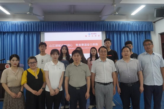 为深入学习贯彻习近平总书记在庆祝中国共产主义青年团成立100周年大会上的讲话精神,6月1日下午,九江学院第七期博士大讲堂活动在文友楼204教室举行,本期讲堂以“山江湖城启智润心、青春赛道奋力奔跑”为主题。讲堂由三位嘉宾文学院鲍静怡博士、刘汤琪娜博士和该院2022届毕业生裴全松同学联袂分享。校党委委员、纪委书记李广欣出席活动并讲话。校学生处、校团委负责人和文学院党政负责同志和50名学生现场参加活动,本期讲堂还进行了网络同步直播,近四百名师生收听收看。