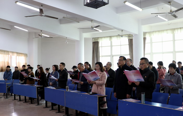 学院党委始终坚持用习近平新时代中国特色社会主义思想武装头脑,增强“四个意识”,坚定“四个自信”,坚决做到“两个维护”。坚持不懈地用党的理论创新成果武装头脑、指导实践,构建“学讲研用”四位一体理论学习模式,狠抓“知引融行”四个环节,扎实推进思想政治学习教育常态化制度化,教育引导广大党员干部旗帜鲜明讲政治,筑牢信仰之基、补足精神之钙、把稳思想之舵。组织师生学习了习近平总书记在中国共产党十九届中央纪委六次全会上的重要讲话精神、2022年全国两会精神、习近平总书记《关于坚持和完善党和国家监督体系论述摘编》内容、习近平总书记相关论述精神、习近平总书记在庆祝中国共产主义青年团成立100周年大会重要讲话精神及在中国人民大学考察时的重要讲话精神等内容。通过学习,持续深入学习贯彻习近平新时代中国特色社会主义思想,并利用 “学习强国”学习平台,让全院师生加入学习,养成“每日必学”的良好习惯,真正用党的创新理论武装头脑、指导实践、推动工作。