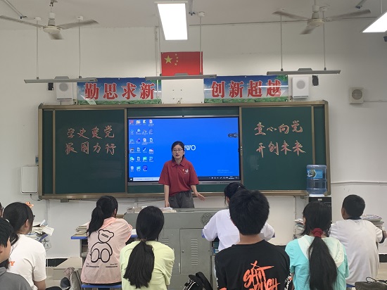 刘晓梅老师以红色音乐党课形式开展了党史故事,通过教唱儿歌《王二小放牛郎歌曲》为同学们讲述了抗日小英雄王二小的感人事迹,引导青少年儿童牢记革命历史、传承红色基因,珍惜和平生活、勇担时代责任;退役军人眭元海同学分享自己的军旅生活和播放征兵宣传片,传递了当兵光荣的正能量,引领青少年儿童增强国防意识,续写先辈光荣,立志保家卫国;刘伟同学通过常识讲解、视频播放、案例列举和安全知识竞答等方式进行防溺水安全教育宣传,引导同学们学会对自己和他人的生命负责,牢固树立生命至上的安全理念。