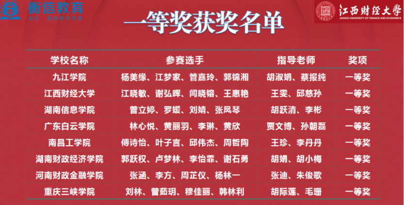 本届大赛共有来自全国的83所本科院校,332名选手齐聚云端参赛。我校会计学专业A2022班杨美缘、A2026班江梦家、财务管理专业A2011班管嘉玲、郭锦湘组成的九江学院代表队,在管理学院副院长蔡报纯、胡淑娟副教授的指导下,克服重重困难,沉着应战、奋力拼搏,经过激烈的比拼,荣获全国第一名。