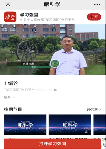 近日,由我校临床医学院黄健教授带领团队教师设计开发的慕课《眼科学》在学习强国平台正式上线,供全国九千多万党员和广大社会群众在线学习。