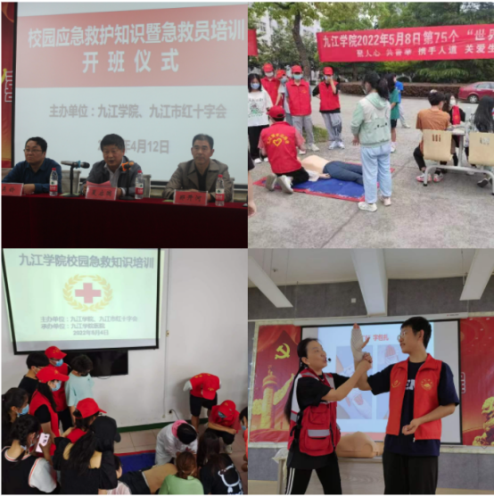 为强化应对突发事件和意外伤害的应急意识,帮助师生了解掌握应急救护的基本知识,提高自救互救能力,更好推动平安和谐校园建设,校医院和九江市红十字会为学校师生开展急救培训,每年组织保卫干事、辅导员、学生唯医志愿服务队员和学生代表开展应急救护培训,学习应急救护的基本知识,掌握除颤器AED的操作方法等,考核合格后发放救护员证,至今已培训师生救护员约2000余名。