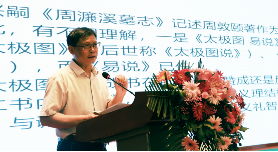 在论坛主旨报告会上,南昌大学江右哲学研究中心主任、杨柱才教授,湘南学院周敦颐研究院院长、张京华教授,四川大学历史文化学院教授、中国宋史研究会副会长粟品孝先后以《周敦颐哲学思想及其现代意义》《宋版太极图的形态》《清康熙本周濂溪先生全集编纂的动因、特点与流传》为题作了主旨报告。