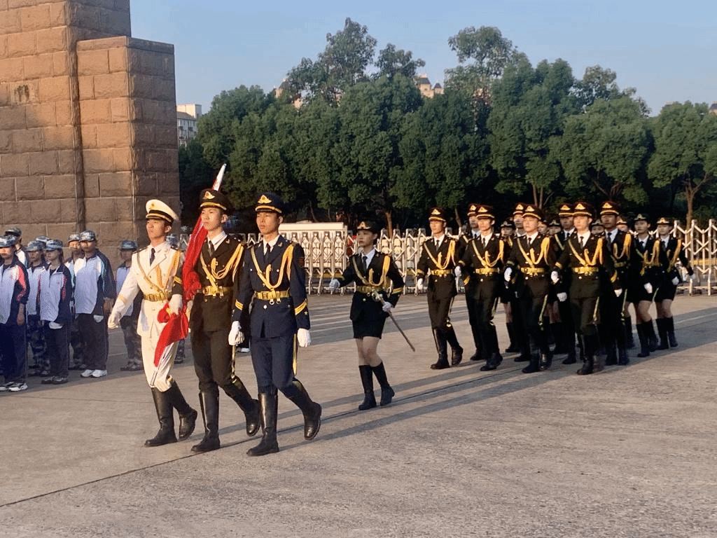 上午七时整,九江学院近千名青年师生齐聚西大门升旗广场,学校国旗护卫队员身着礼兵服,迈着铿锵有力的步伐,护送国旗至升旗台。伴随着雄壮激昂的《义勇军进行曲》,鲜艳的五星红旗迎着旭日冉冉升起,观礼方阵庄严肃立,向国旗行注目礼,伴着国歌齐声高唱,表达对祖国的热爱和崇敬,对和平的向往与坚守。