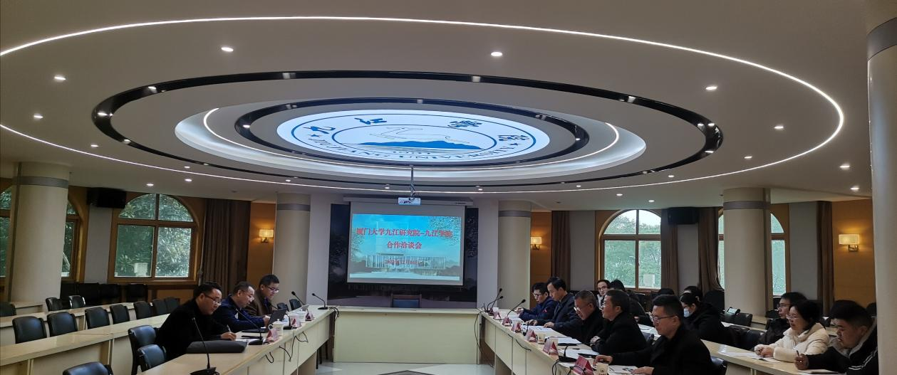 12月14日上午,在行政楼一号会议室,厦门大学九江研究院、厦门大学物理学院与我校就两校合作进行了洽谈,并签署合作协议。副校长严平,厦门大学物理科学与技术学院物理学系副主任厦门大学九江研究院执行院长张学骜教授、厦门大学九江研究院执行副院长蔡加法教授、厦门大学九江研究院外联主任郑良顺教授,我校科研处、理学院、化学化工学院负责人和相关学院教师代表参加洽谈会。
