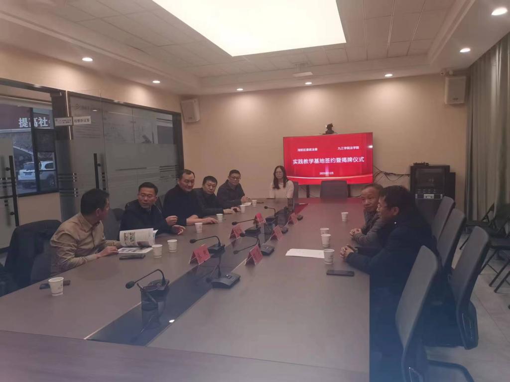 浔阳区委常委政法委书记胡明海就浔阳区综治中心及多元调解工作相关情况进行了介绍,并表示希望能加强与九江学院法学院之间的交流与合作,为社会综合治理及多元调解工作提供理论和智力支持,强化多元调解工作队伍专业素养。法学院负责人李德恩表示,希望充分利用浔阳区多元调解服务中心工作实践累积资源,与法学院优质教育教学资源与法学领域理论研究成果,大力推进地方政法工作实务与法学教育相结合,积极推动法治九江、法治浔阳建设,以实现政法工作实践、法律服务与法学教学、法治教育的相互融合,共同实现资源共享、优势互补、紧密合作、共同发展的合作宗旨和目标。