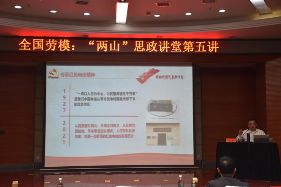 向东以《传承红色基因书写劳模时代荣光》为题,用微电影的方式向大家展示了自己是如何从一名普通机线员到三届全国党代表的成长经历和心路历程。他还向大学生分享了六点人生体会:不断给自己设定目标,要有永不放弃的精神,坚持快乐的心态,养成持续学习的习惯,永远坚持心中的善良,不断完善持续改进。