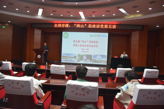 资源环境学院党委书记杨期勇表示,本期“两山”思政讲堂以“聆听劳模匠心追梦 工匠精神薪火相传”为主题,是学院推动“弘‘两山’理念,育环保英才”党建品牌工作与学生思政工作深度融合,将工匠精神、劳模精神深深植入校园之中,引领青年大学生成长成才的一项具体举措。