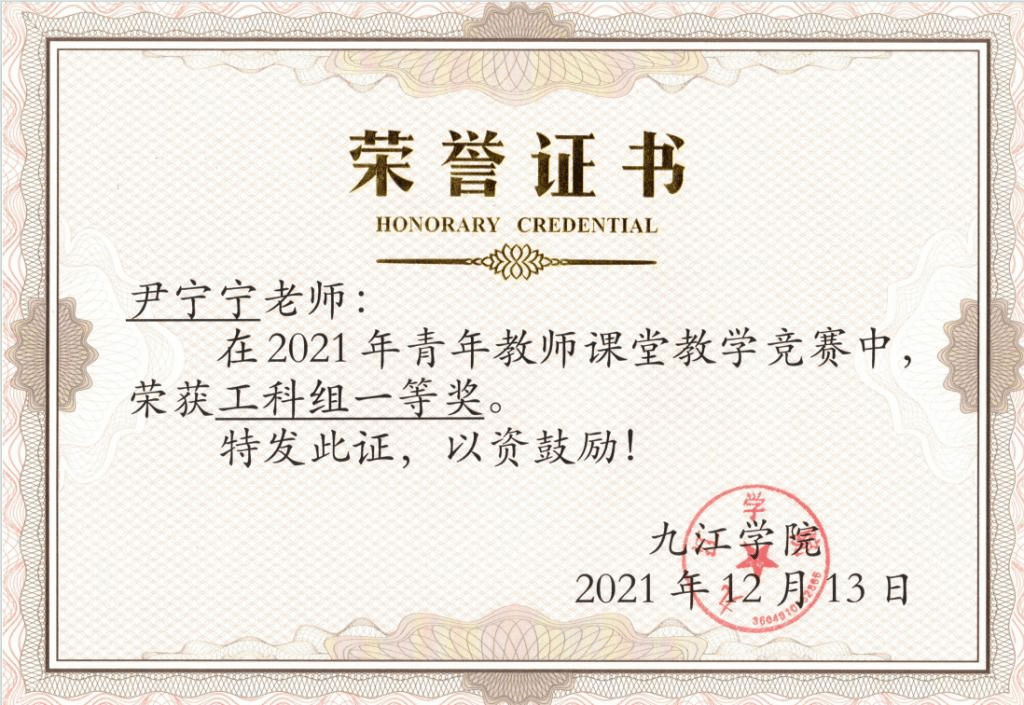 学院注重青年教师和双师型教师的培养,严格落实青年教师导师制,拥有一支年龄、学历、职称、知识结构合理、教学经验丰富的师资队伍。专任教师中具有博士学位教师比例超95%,有硕士研究生导师4人。有省赣鄱俊才(领军人才)1人,首批江西省人大环境与资源保护专家1人,江西省中青年骨干教师1人,九江市十大最美青年科技工作者1人,九江市“双百双千”领军人才3人,中国环境科学学会理事1人、中国生态经济学会理事1人,江西省环境科学学会常务理事1人。学院教师在江西省青年教师教学大赛中荣获三等奖,获九江学院青年教师教学比赛一等奖1项,三等奖2项,获省高校教师教学创新大赛三等奖1项。