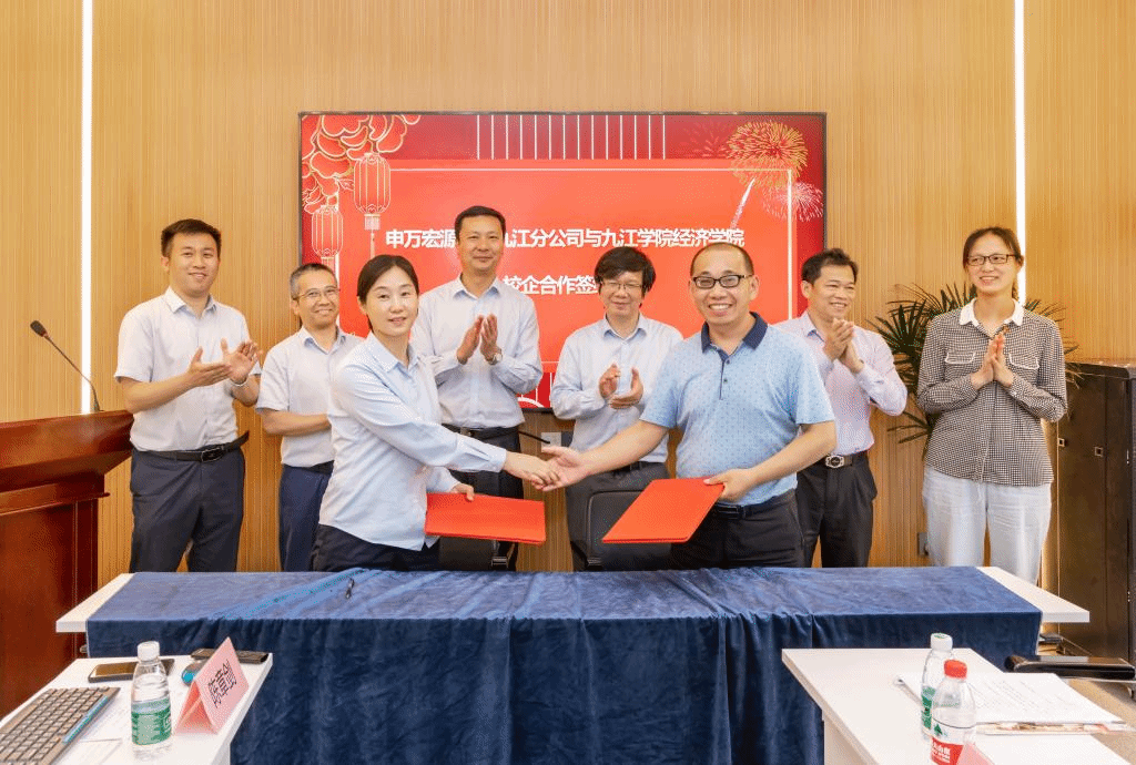座谈交流中,王万山介绍了我校的办学历史、学科专业、人才培养特色、服务地方经济高质量发展情况等。申万宏源证券江西分公司副总经理杨磊、九江分公司总经理王唯静等企业负责人对王校长一行到访公司表示热烈欢迎,对学校多年来为公司输出大量优秀人才表示赞赏,并重点介绍了该公司能给我校人才培养提供的实践基地、学生实习、案例教学、行业师资等优质资源,阐述了如何有效推进校企合作的主要思路。