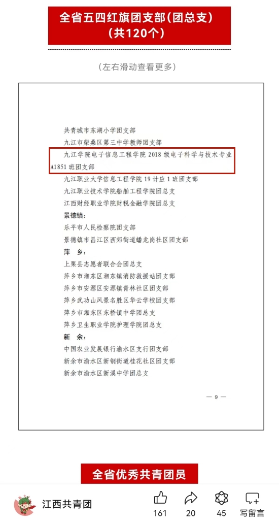 学生团支部荣获“全省五四红旗团支部”光荣称号