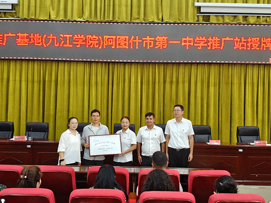 授牌仪式上,国家语言文字推广基地(九江学院)代表向阿图什市第一中学师生介绍了九江学院近年来语言文字推广工作开展情况,并阐述了推广普通话和规范汉字对于提升国民素质、促进文化交流、增强国家凝聚力的重要意义。