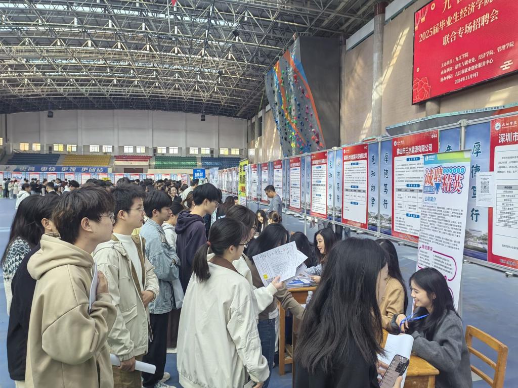 为切实做好我校2025届毕业生就业工作,服务毕业生高质量就业,11月9日,由九江学院主办,招生与就业处、管理学院与经济学院联合承办、九江市就业创业服务中心协办的2025届毕业生联合专场招聘会在体育训练中心顺利举行。副校长查振华到招聘会现场指导,招生就业处负责人、经济学院、管理学院负责人参加。