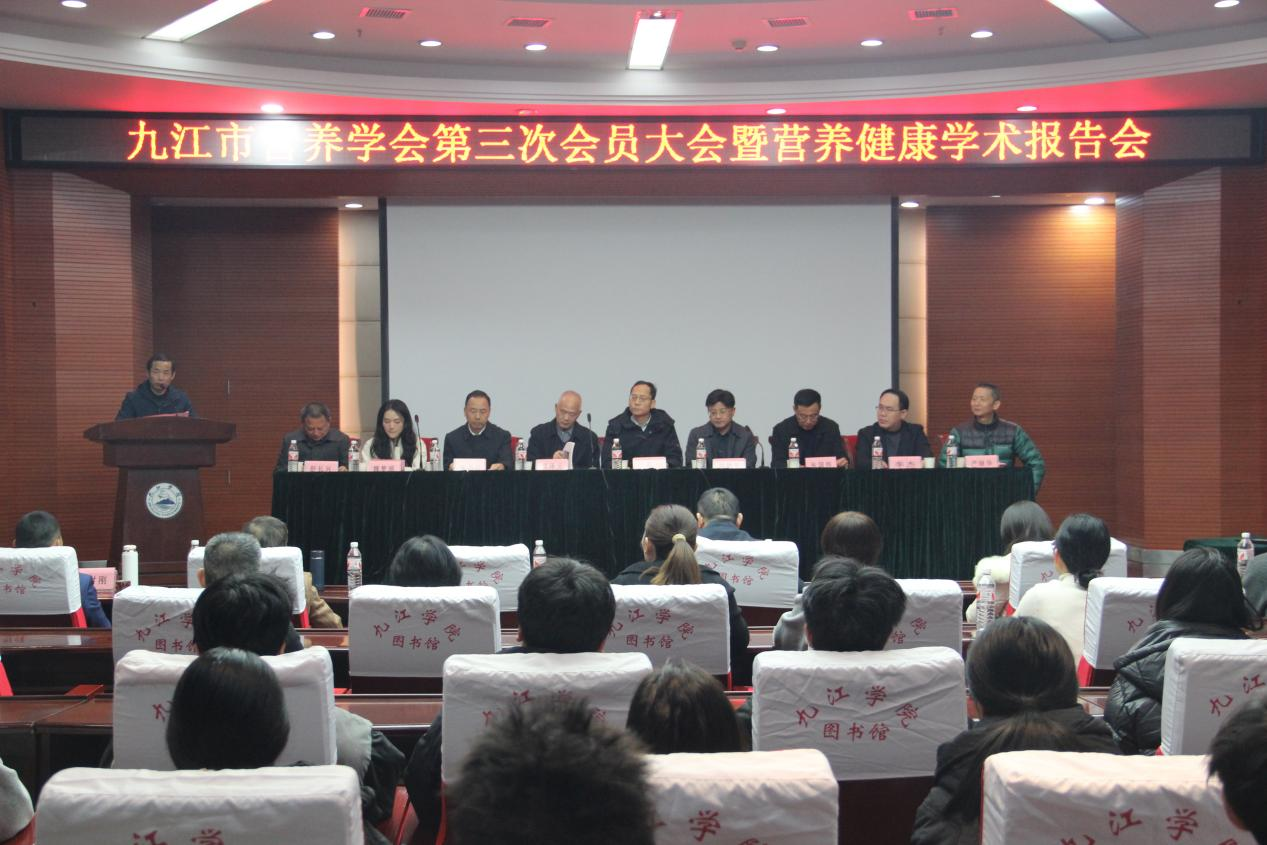为了提升公众对营养健康知识的认识,12月7日,九江市营养学会第三次会员大会暨营养健康学术报告会在逸夫图书馆一楼报告厅开幕。本次报告会由九江市营养学会主办,九江学院药学与生命科学学院承办。副校长王殿元、九江市科协副主席徐勋平、江西省营养学会理事长邓泽元、药学与生命科学学院负责人、九江市民政局、九江市科协相关干部等参加开幕式。