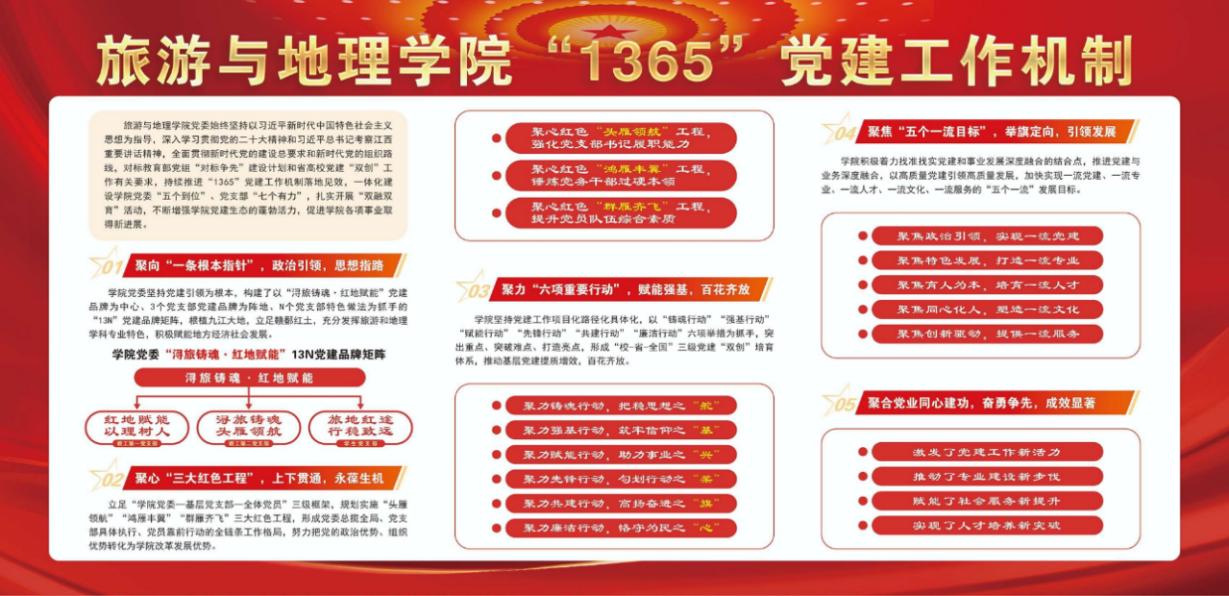 旅游与地理学院自学校第二次党代会以来,在习近平新时代中国特色社会主义思想指导下,深入学习领会学校第二次党代会确立的“3353”战略,准确把握精髓要义,对标“三年行动计划”“九大工程”,抢抓机遇,奋勇争先,以高质量党建引领高质量发展,取得了丰硕成果。