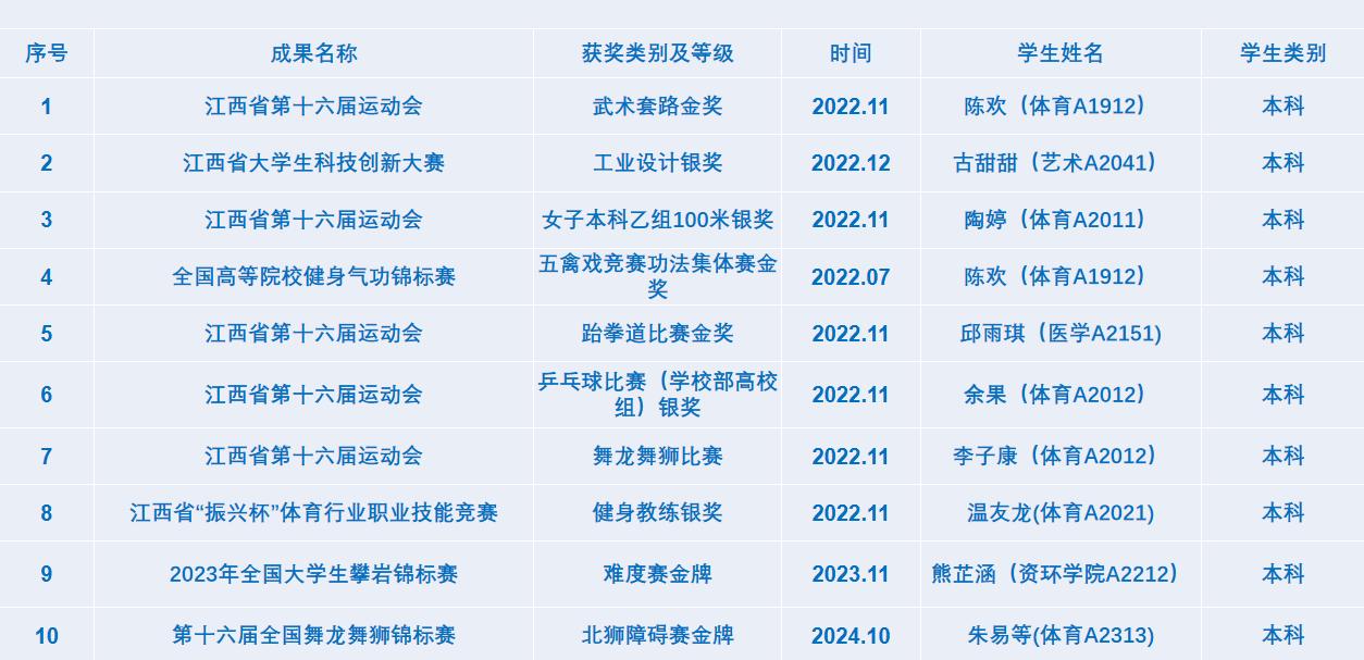 体育学院学生学科竞赛获奖统计表(部分)