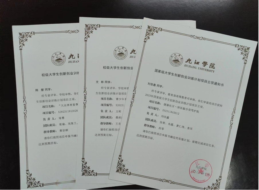 体育学院学生创新创业项目立项证书