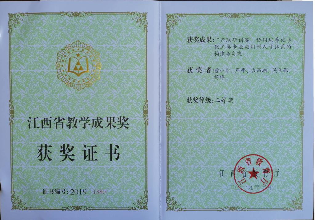 获江西省教学成果二等奖