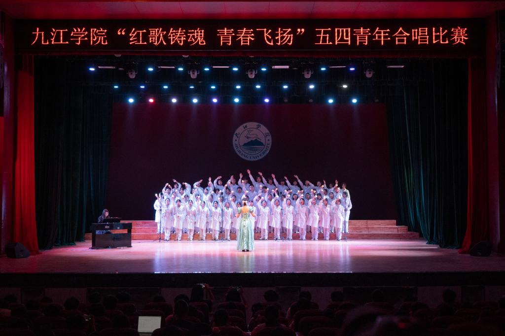 为深入学习贯彻落实党的二十大精神,进一步弘扬“爱国、进步、民主、科学”的五四精神,引领青年学子赓续红色血脉、勇担时代使命,4月27日晚,由九江学院学生工作处、团委主办的以“红歌铸魂·青春飞扬”为主题的五四青年合唱比赛在学校大礼堂举行。校党委委员、副校长吴维勇出席活动并为获奖单位颁奖。学校相关职能部门负责人、二级学院党政负责人、师生代表1000余人共同观看这场青春盛宴。