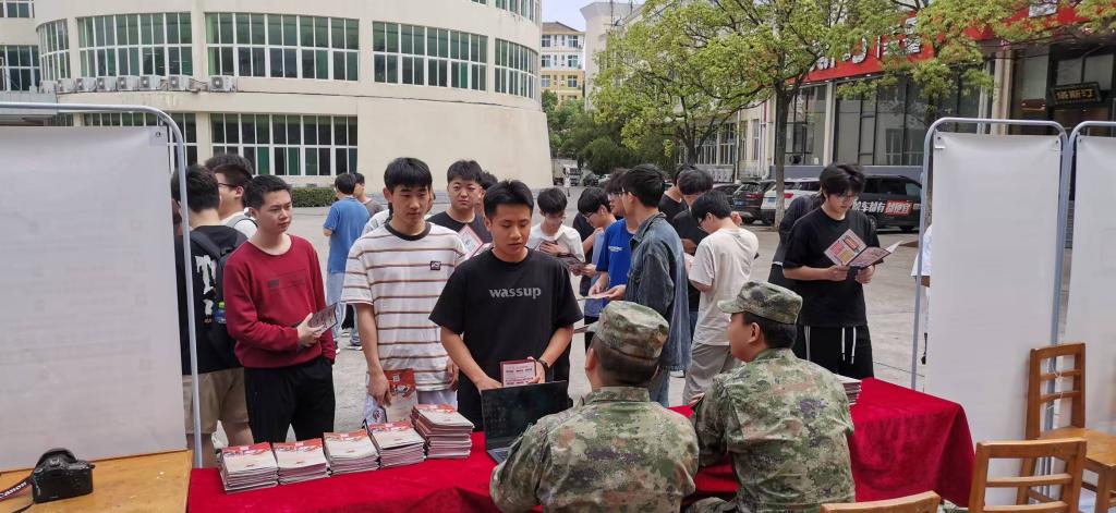 当天,学生工作处还在三食堂广场举行2025年征兵政策现场咨询活动,九江军分区、濂溪区人武部相关负责同志亲临现场为有参军意向的同学们答疑解惑,活动还吸引了濂溪区融媒体的关注并到场采访报道。