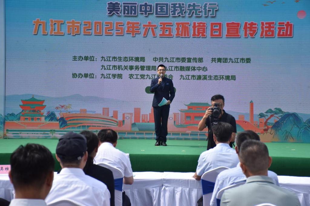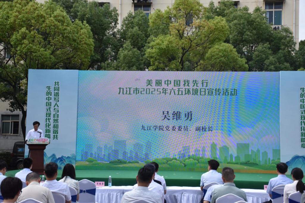 6月3日,九江市2025年六五环境日主题宣传活动在九江学院启动。活动由我校资源环境学院联合市生态环境局、市委宣传部、共青团九江市委、市机关事务管理局、九江市融媒体中心共同主办,主题为“美丽中国我先行”,旨在推动全社会共建生态文明。市人大常委会副主任罗百奚、副市长容长贵、市政协副主席程向阳及九江学院副校长吴维勇出席活动。