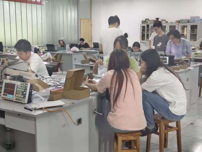 我校电子信息工程学院历来高度重视该项赛事,电子信息工程学院组建了由资深教师组成的指导团队,从赛前选题指导、技术难点预判,到赛中方案优化、问题实时攻关,全程为学生提供专业支持。院长邓长寿、副院长罗东云在竞赛期间到现场看望、鼓励全体参赛学生,在实地了解赛事进度、学生备赛状态及硬件保障情况后,领导对师生们的辛勤付出给予充分肯定。4 天 3 夜的赛程中,参赛学生在指导教师的带领下,围绕作品设计目标分工协作:有的负责电路搭建与硬件调试,有的专注程序编写与功能测试,有的统筹方案优化与报告撰写。面对元器件兼容性不足、程序运行稳定性欠佳等突发问题,师生们通宵达旦排查故障,反复迭代优化设计方案,最终确保 21 组参赛作品顺利完成提交。