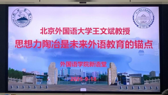 9月18日下午,北京外国语大学文科资深教授王文斌应邀来到我校外国语学院新语堂,为师生带来题为“思想力陶冶是未来外语教育的锚点”的精彩讲座。讲座吸引了众多外语专业师生聆听学习。