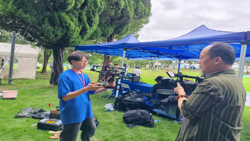 面对经费预算有限的现实挑战,团队以“实践赋能”为导向,通过拆解旧无人机获取可用部件、充分利用实验室现有元器件、手工焊接关键电路等方式降本增效,最终仅以 1/3 商业方案的成本,实现了与品牌无人机相当的性能指标。这种“从 0 到 1”的自制自研过程,不仅让学生的工程思维、动手能力与问题解决能力得到质的提升,其创新成果还吸引了多家新闻媒体关注,团队成员接受现场采访,生动展现了我校“赛学教融合”育人模式的实践价值。