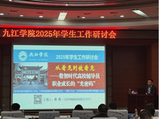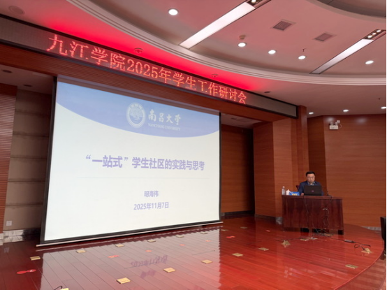 11月7日,九江学院2025年学生工作研讨会在逸夫图书馆报告厅举行。北京师范大学、南昌大学、佛山大学、阜阳师范大学、东华理工大学、赣南师范大学等近30所省内外高校40余名专家和学工干部来校指导和交流工作。九江学院党委委员、副校长吴维勇出席研讨会开幕式。党委学生工作部、团委全体人员,各二级学院党委书记、副书记、学生科、党建与思政科科长及副科长以及辅导员代表共计150余人参加。会议由党委学生工作部部长吴铃主持。
